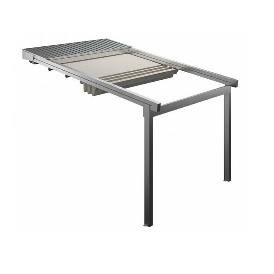 Пергола А2 — пергольный моторизованный тент с использованием алюминиевого опорного каркаса 110х80 с max. выносом до 7.0м. Изделие выполнено частично с применением системы скрытого крепежа (крепежные узлы скрыты).